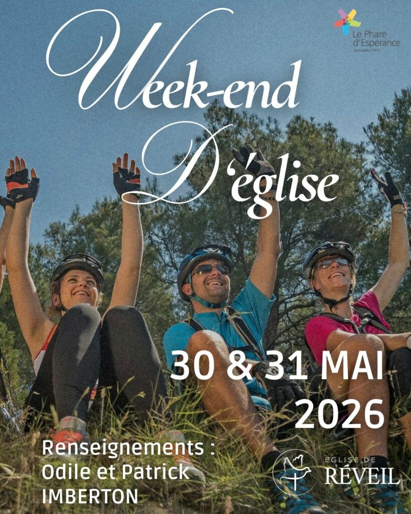 A noter sur vos agendas : week-end d’église les 30 et 31 mai
