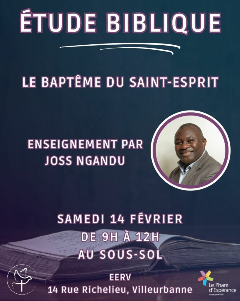 Notre Pasteur Joss Ngandu évoquera un enseignement sur le baptême du Saint-Esprit